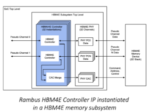 Rambus Inc. has released its HBM4E Controller IP designed for next-generation AI accelerators and high-performance computing. The controller supports data rates up to 16 Gbps per pin, providing 4.1 TB/s of throughput per memory device.
