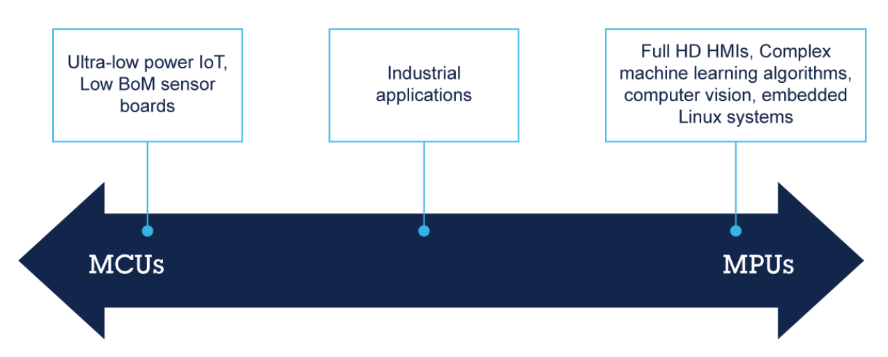 Depending on the system requirements, a hybrid solution that includes both an MCU and an MPU can produce maximum benefits. A low-power MCU can be used for handling real-time control, with the MPU taking on the tasks that require higher performance. For example, applications with diverse requirements, including the need to balance high-level features, like connectivity, complex algorithms, and GUIs, with the strict timing requirements of embedded control, may benefit from a hybrid approach.