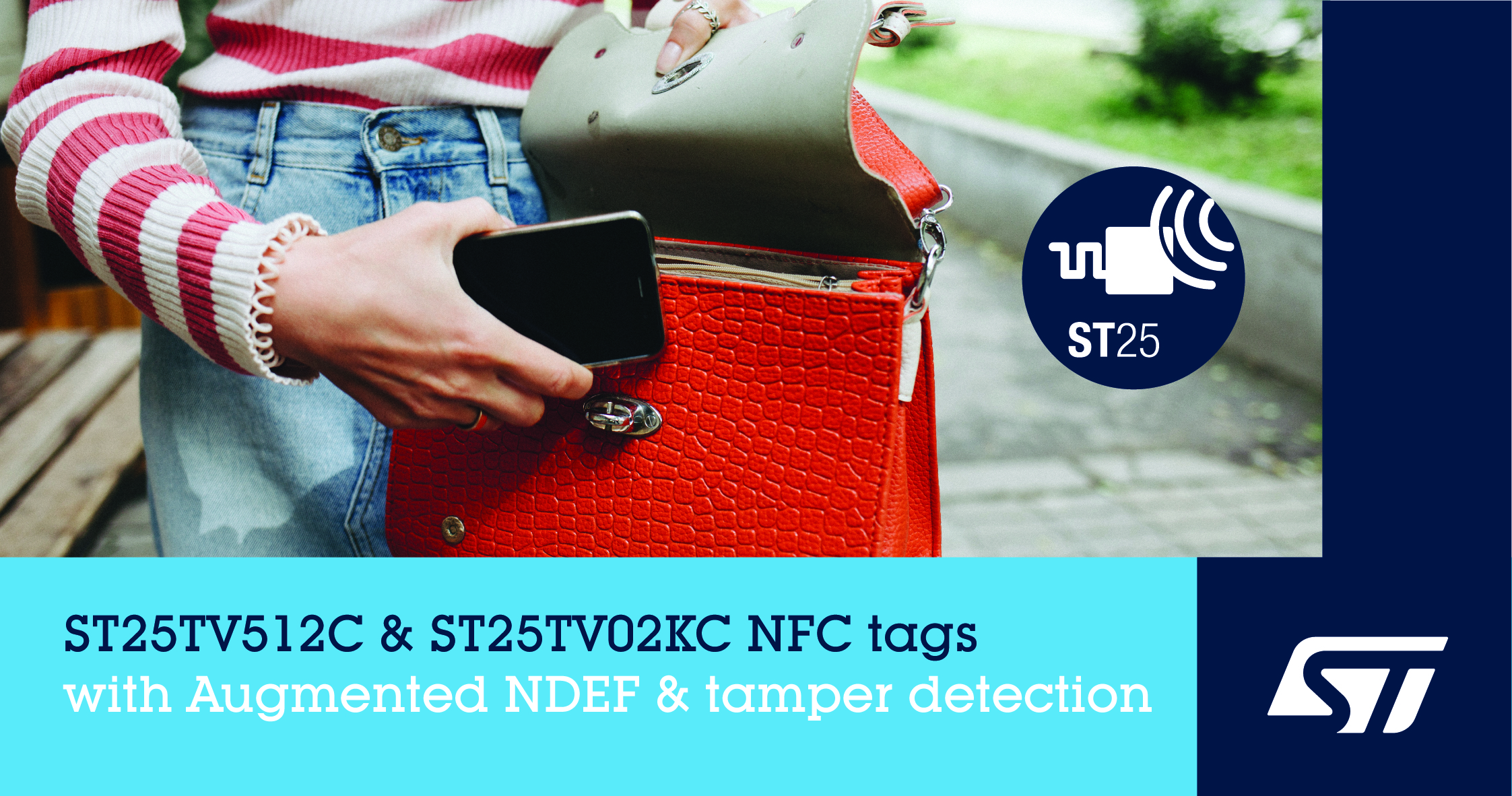 Uniquely combining NFC Type-5 properties with augmented NDEF (NFC Data Exchange Format) and tamper detection, STMicroelectronics’ ST25TV512C and ST25TV02KC tags let developers leverage NFC contactless communication in new and imaginative ways for applications in consumer engagement, brand recognition, supply-chain management, and access control.