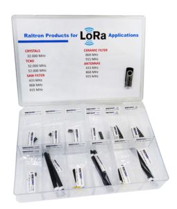 The LoRa Develoment Kit includes three different sized 32.000 MHz crystals that fully meet the frequency, thermal and performance requirements of the LoRa protocol. The kit also has 32 MHz and 52 MHz temperature compensated crystal oscillators (TCXO). The crystals offer low-G sensitivity compatibility with LoRa standard requirements, and can be used for applications subjected to harsh environmental conditions such as acceleration forces.