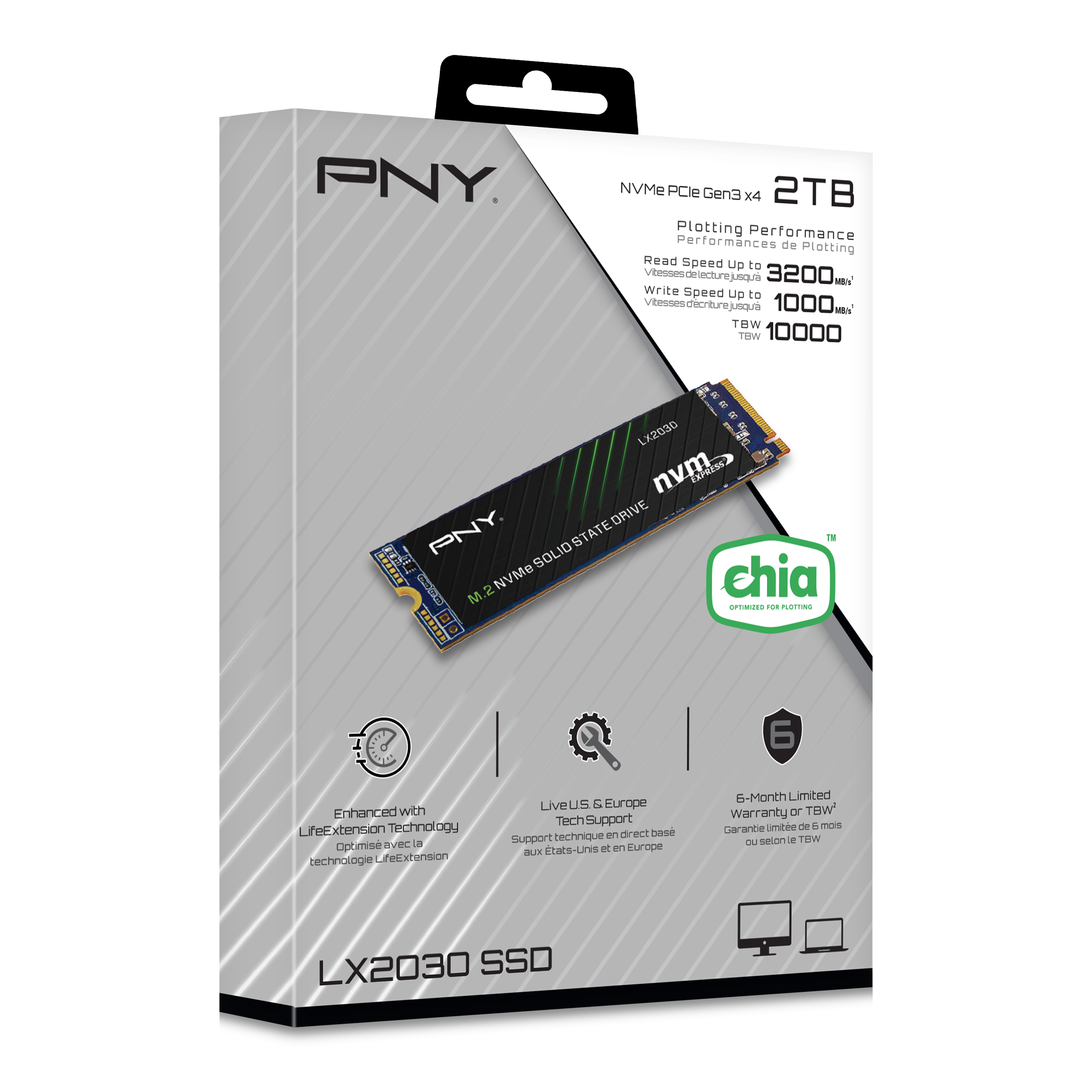 The PNY family of LX drives take advantage of Lifextension technology to offer a Chia plotting TBW rating of up to 54,000 in the LX3030 2TB. To deliver such a high Plotting TBW, the LX series of PNY SSDs utilize an advanced AI Engine, LDPC, and Flash I/F to improve NAND endurance, making them the best unit cost for plotting. Without sacrifice, you are able to take full advantage of Lifextension technology and the up to 18X better endurance by adding an LX drive to your system.